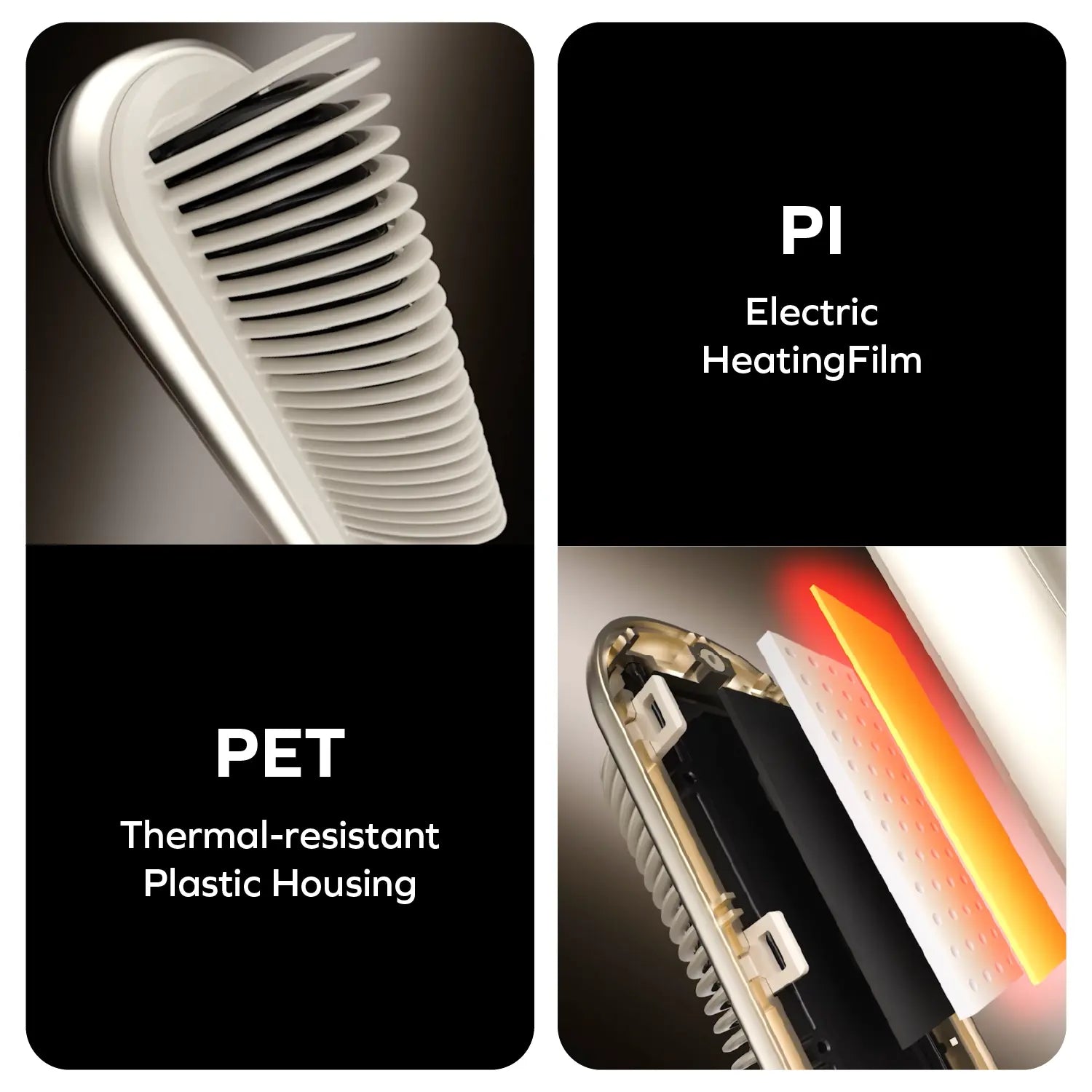 Experience one-step silk press perfection with the advanced PI heating film that ensures rapid, even heating for a salon-quality finish, anytime and anywhere.