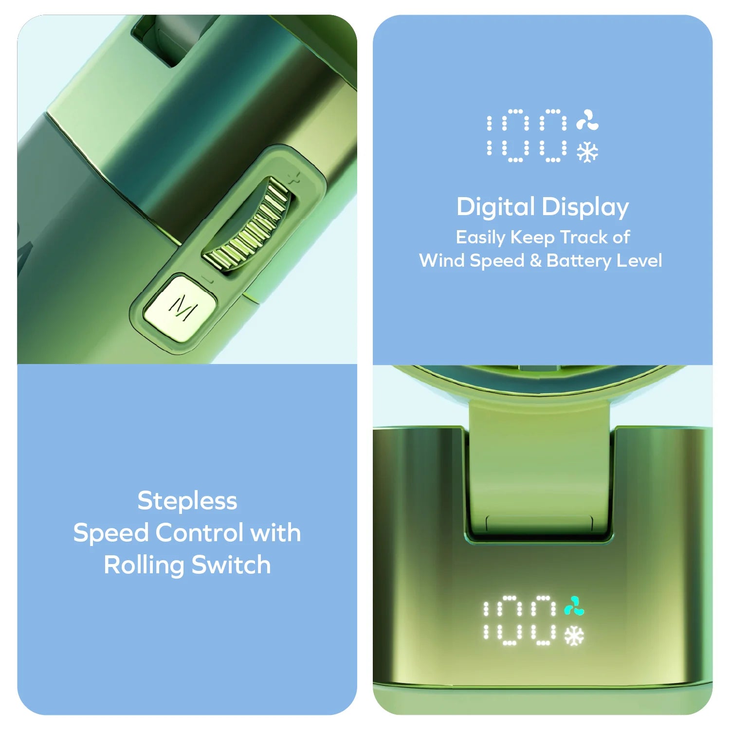 Transform from handheld to desktop to neck-worn companion instantly - this versatile cooling solution adapts to your lifestyle with professional-grade performance.