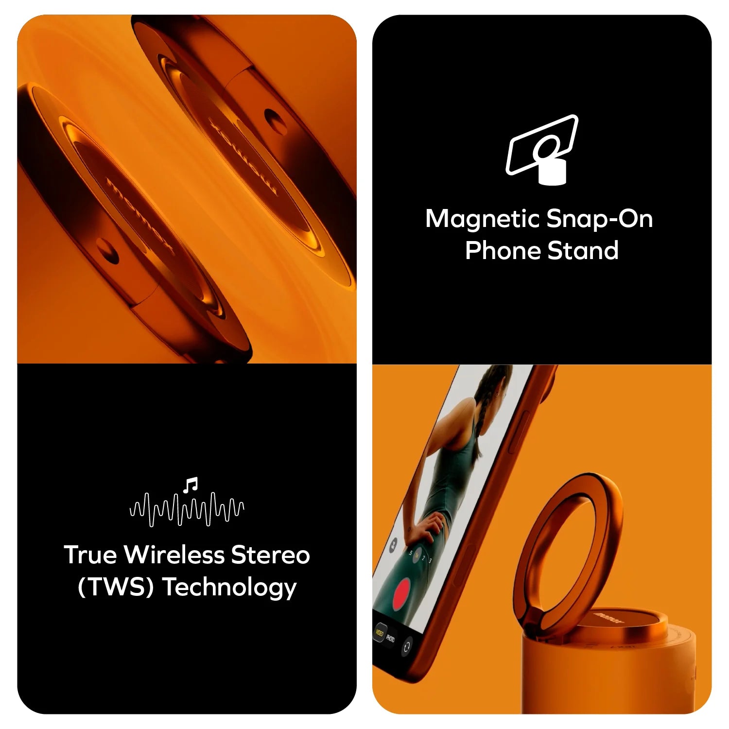 The revolutionary magnetic snap-on phone stand feature transforms your bottle into a stable, hands-free viewing platform.