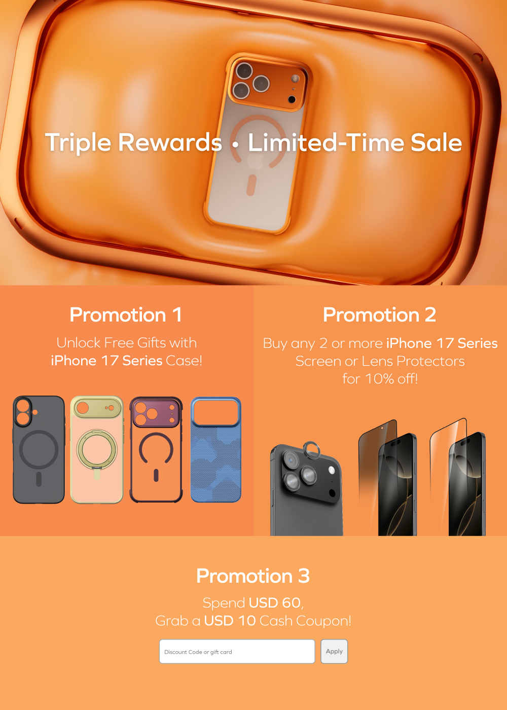 - A USD10 cash coupon code will be provided in the order confirmation email and shipping confirmation email upon spending USD60 or more, including an iPhone 17 & iPhone Air product.